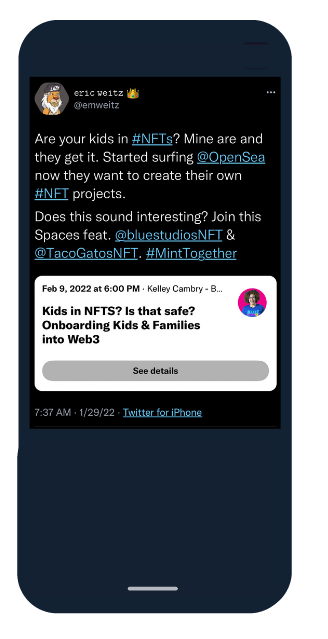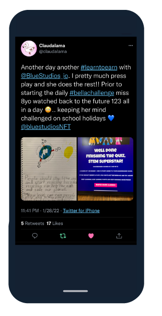 The Blue Studios platform provides both parents and children with a safe, fun, creative place to learn about the Web3.